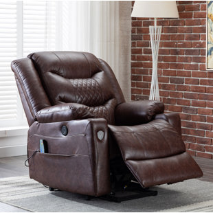 Kanajah 35.5'' Wide Simulated Leather Power Lift Assistance Recliner with Massager